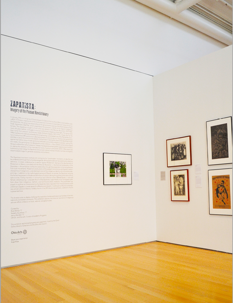 Student-curated show at the Gund Gallery examining the thematic and iconographic connections between protest material inspired by the Zapatista revolutionaries of the 1990s and works produced by early 20th century Mexican masters, such as Diego Rivera and José Clemente Orozco.